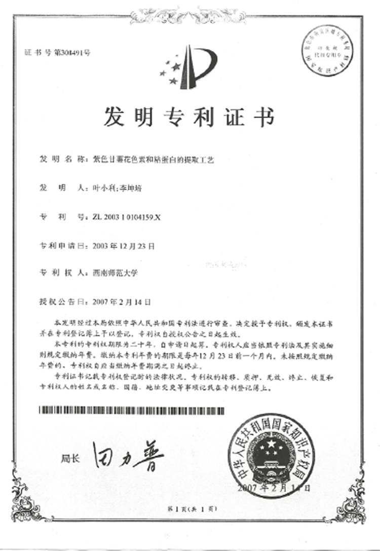 1. 甘薯糖苷饱和脂肪酸酯提取及应用**专利(澳大利亚)